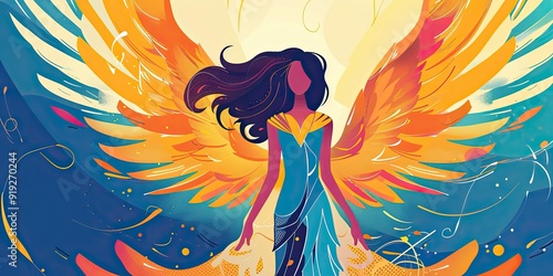 © jambulart, Obraz premium Woman with long hair and wings.