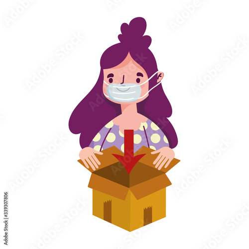 © Stockgiu, Obraz premium woman with medical mask order online shopping covid 19