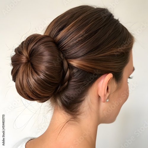 Fototapeta premium Woman with Neat Elegant Hair Bun Hairstyle Close Up