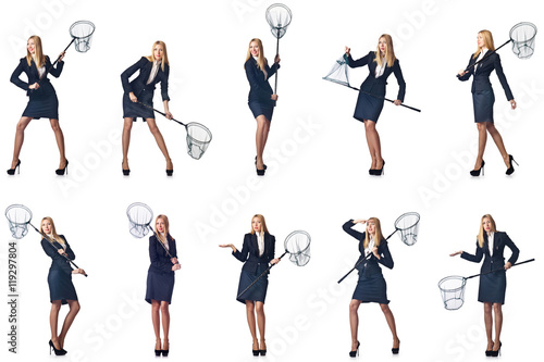 Fototapeta premium Woman with net isolated on white