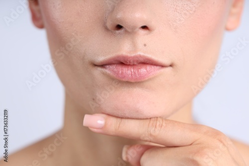 © New Africa, Obraz premium Woman with normal skin on light background, closeup