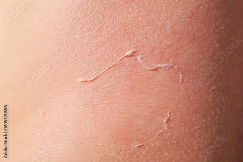 © New Africa, Fototapeta premium Woman with peeling skin from sunburn, closeup