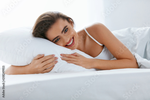 © puhhha, Fototapeta premium Woman With Pillow Resting On Bed