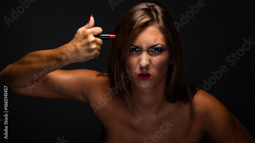 © milanmarkovic78, Obraz premium Woman With Red Lipstick
