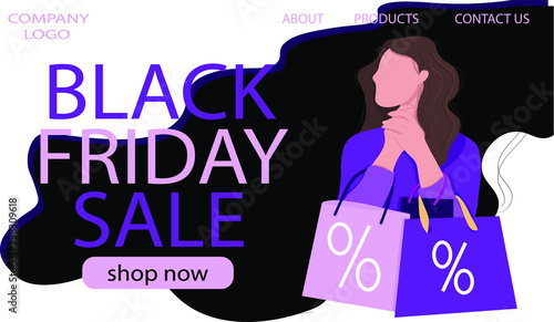 Obraz premium woman with sales bags . Black friday sale. Landing page template. Cute vector...