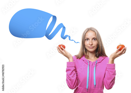 © Vasily Merkushev, Naklejka premium Woman with tomatoes, isolated on white