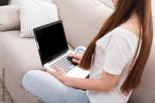 Fototapeta premium Woman working at home with laptop.