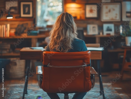 © jinna, Obraz premium Woman Working From Home Office Cozy Workspace