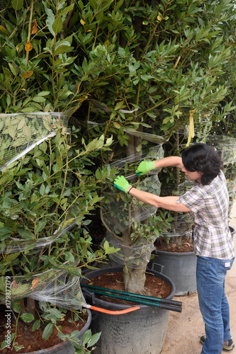 © Curto, Naklejka premium woman working in the garden center,