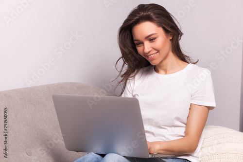 © Aleksandr Doodko, Fototapeta premium woman working on a laptop at home.