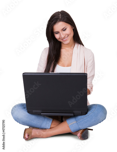 © Andrey Popov, Naklejka premium Woman working on her laptop