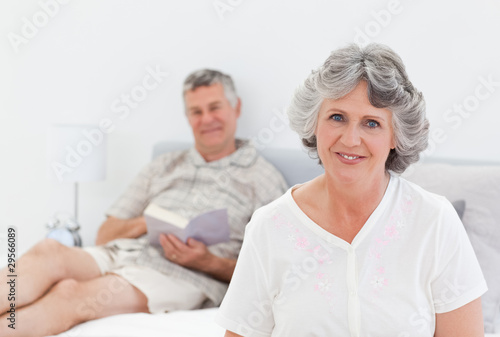 © WavebreakMediaMicro, Obraz premium Woman working on her laptop while her husband is reading