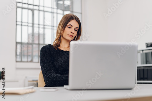 © contrastwerkstatt, Fototapeta premium Woman working on laptop at her desk in the office