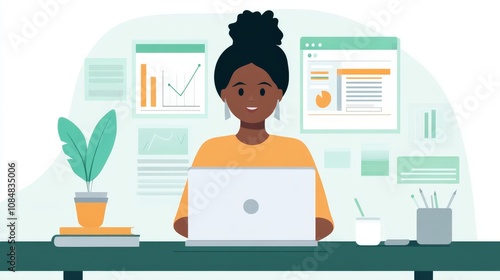 Obraz premium Woman Working on Laptop with Data Analysis Charts