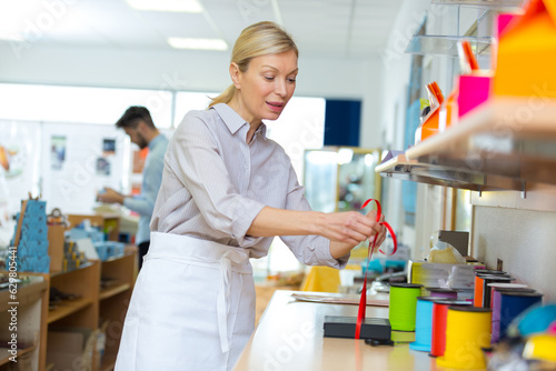 © auremar, Obraz premium woman wrapping a chocolate christmas present