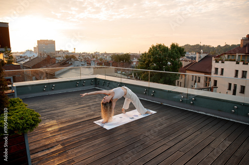 © WellStock, Naklejka premium Woman Yoga Pose On Rooftop