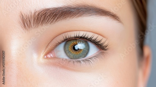 © MAKASIHMAS SIDNEY, Obraz premium Womans Eye Lush Eyelashes Natural Makeup High-definition Soft Lighting Close-up Extreme Detail Intense Gaze Neutral Background Soft Beige Tones Ophthalmology Advertising