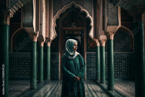 © jambulart, Naklejka premium Women beatiful In Mosque, Generative Ai