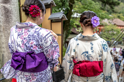 Fototapeta premium Women dressing like geishas in Japan