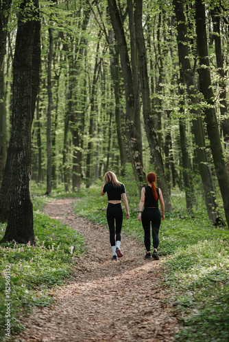 Obraz premium Women enjoying outdoor exercise in forest setting