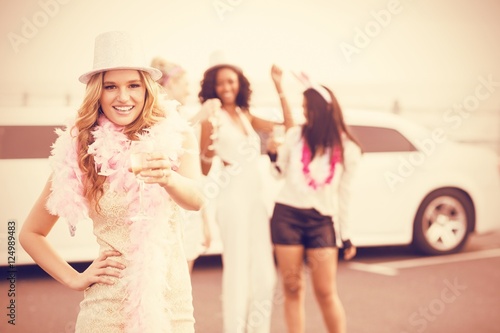 © vectorfusionart, Obraz premium Women holding champagne next to limousine