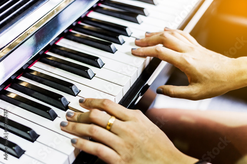 © zoneteen, Fototapeta premium women playing piano. soft focus