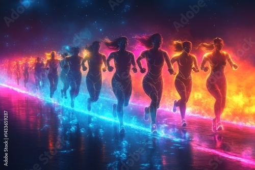 © sennauli, Fototapeta premium Women runners fire ice energy race