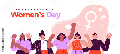 © Cienpies Design, Obraz premium Women's day trendy flat cartoon girl group card
