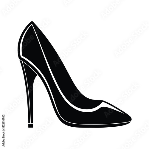 Obraz premium Women's high-heeled shoe icon, black silhouette, Art & Illustration on a white background