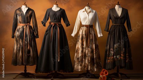 Fototapeta premium Women's long dresses on mannequins in vintage style. The concept of shopping...
