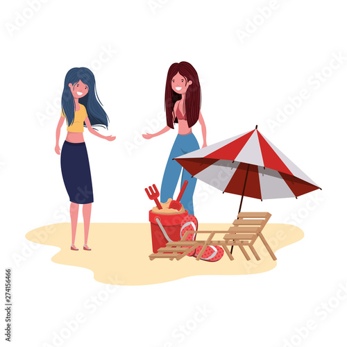 © Grgroup, Fototapeta premium women standing in the beach with umbrella
