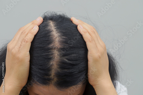 © Rattanakun, Naklejka premium Women with hair loss dryness and frizziness.