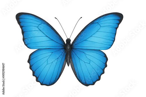 © Sandra, Obraz premium Wonderful blue morpho butterfly with open wings isolated on transparent background, ideal for graphic projects