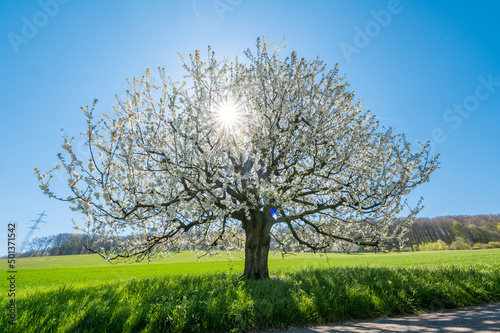 © schame87, Obraz premium wonderful cherry tree in bloom in Baselland in spring