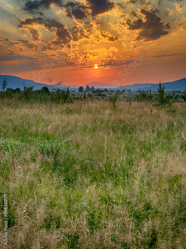 © thaarey1986, Obraz premium Wonderful landscape view on the Carpathian Mountains during the sunset in the summer season