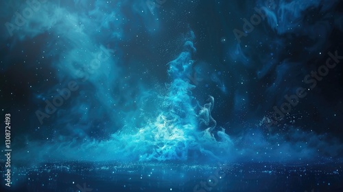Fototapeta premium Wonderful picture of blue light of sparkling particles scattered across space...