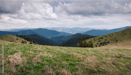 © aulia, Fototapeta premium wonderful springtime landscape in mountains. grassy field and rolling hills