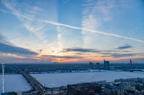 Obraz premium Wonderful sunset over Riga city by winter