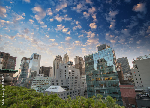 Obraz premium Wonderful sunset view of Manhattan skyscrapers from a rooftop