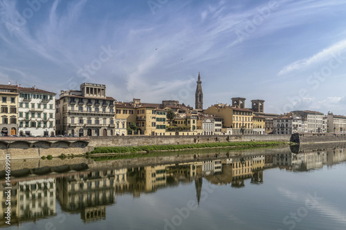 Fototapeta premium Wonderful view of Lungarno delle Grazie from the homonymous bridge, historic center of Florence, Italy, under a beautiful sky