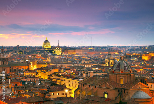 Naklejka premium Wonderful view of Rome at sunset time with St Peter Cathedral
