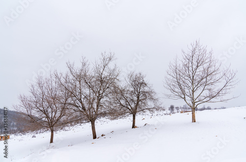 © Tuba, Fototapeta premium Wonderful winter scene with lonely trees. March 18, 2020 Turkey