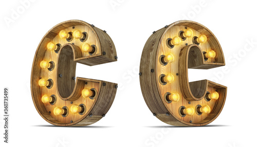 Fototapeta premium Wood alphabet light bulb 3d rendering illustration with clipping paths.