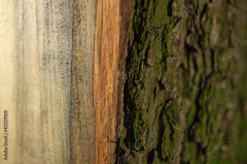 Obraz premium Wood background texture in section with bark and core