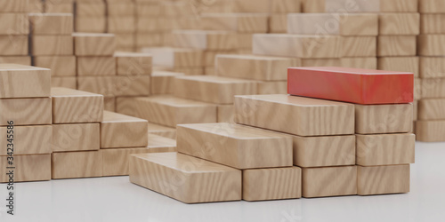 © eliahinsomnia, Obraz premium Wood block stacking as step stair case, business concept for growth success process 3d rendering illustration