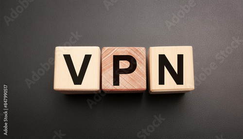 © hardvicore, Obraz premium Wood blocks with abbreviation text VPN. Virtual private network. Secure connection. Top view, flat lay.