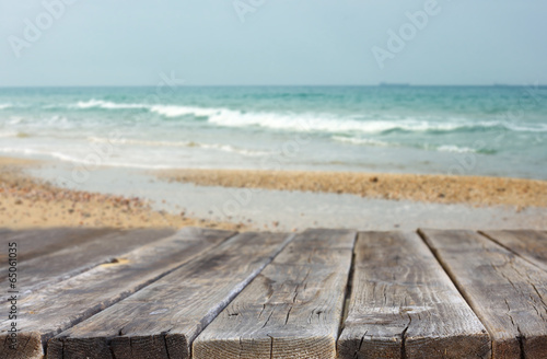 Fototapeta premium wood deck in front of beach landscape