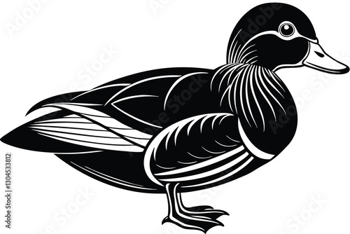 Fototapeta premium Wood duck silhouette Wood duck Bird vector illustration in black and white