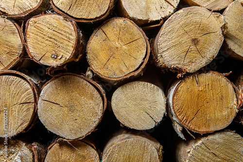 Fototapeta premium Wood for the stove is in the woodpile close-up. Wood texture