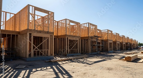 Obraz premium Wood framing stage of residential construction showcasing modern design and...